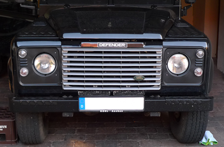 erfüllen, da möchte man nichts falsch machen. Also haben wir weiter geschaut und auch – zum Glück – unser Budget einfach mal ein wenig aufgestockt. Und schon hatten wir doch mehr Auswahl. In Frage gekommen ist letztendlich aber auch nur ein Objekt mit Standort Aachen. Wir also sofort angerufen und einen Termin ausgemacht. Am 12.05.2009 ging es dann mittags (diesmal hatten wir gleich Bares dabei, da wir beide irgendwie schon ein gutes Gefühl hatten) los. Der Verkäufer ist uns auf Anhieb sympathisch gewesen und auch der Fendy hat es uns sofort angetan. Nach einer Probefahrt und ein wenig Verhandeln knallten dann die Sektkorken und wir waren stolze Besitzer eines Land Rover Defender (von uns auch liebevoll "Knatterton" genannt). Warum wir dieses Auto gekauft haben? Gute Frage ... seit Jahren schlagen unsere Herzen höher, wenn wir einen Defender auf der Strasse sehen. Dass es kein Vernunftsauto ist, wissen wir, aber warum nicht mal unvernünftig sein? Land